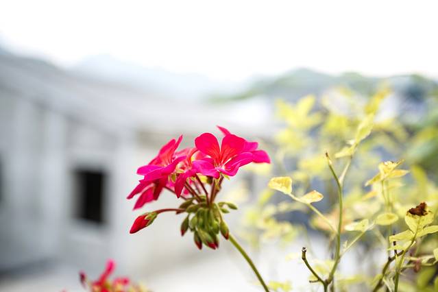 薄凉的山风轻抚,木芙蓉和格桑花竞相开放,掩映其间的白墙灰瓦,宛若淡墨水彩。