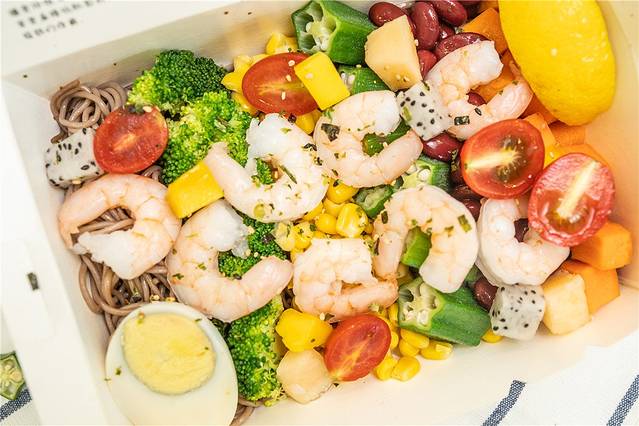 想要增肌,可以点能量补给鸡胸主食沙拉。想要减脂,可以点低脂鸡胸主食沙拉。这也是饿了么平台点单率最高的一款,平凡之中见惊奇之处,效果好才是硬道理。