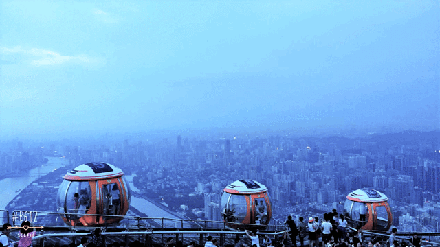 塔上面有摩天轮可以坐,还是挺浪漫的。可以俯瞰整个广州。