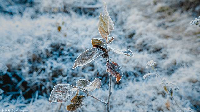 雄鸡司晨,在银杏村的第一个早晨到来。晨光破晓,窗外还依然白雾弥漫。走出房门,步行村落之外,郊野之中尽是霜露沾草的景象,仿佛置身和冰霜有关的洁白童话世界中。