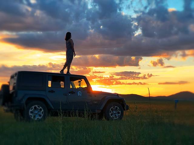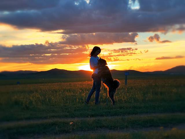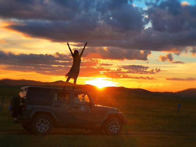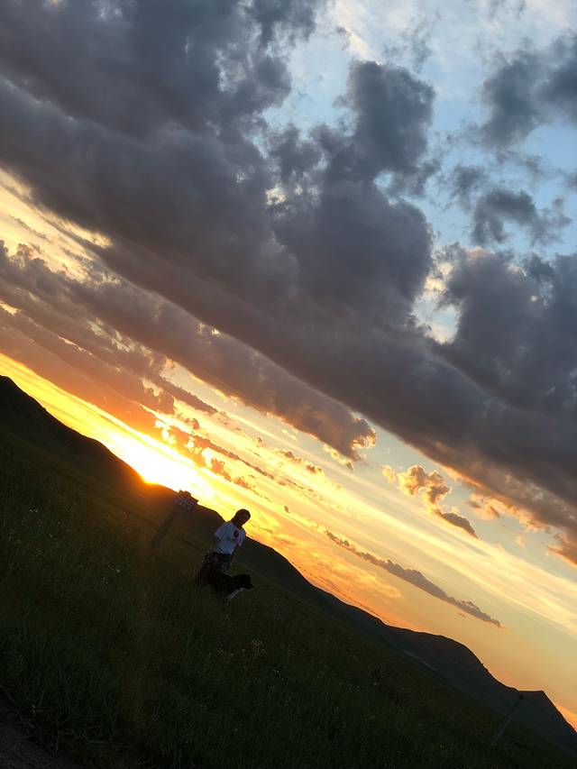 感谢这片天空的厚爱,即使天气预报员怎样无情又狠心地解说会有小雨阵雨雷阵雨,她还是愿意让我们看到落日下的草原,真的真的比想象中辽阔,比想象中美,一心沉浮