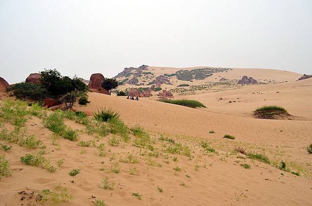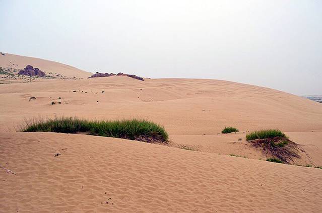 沙地和沙漠一样,都是土地沙漠化的结果,所不同的是,沙漠往往是一片荒芜、寸草不生,而沙地拥有熙熙攘攘的草分布、各种灌木、甚至有一些低矮的杨树丛。