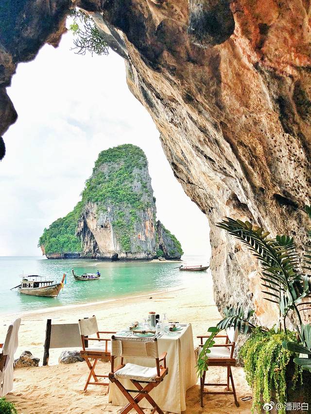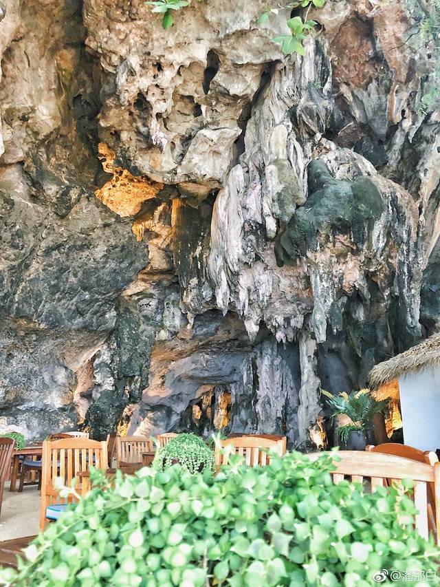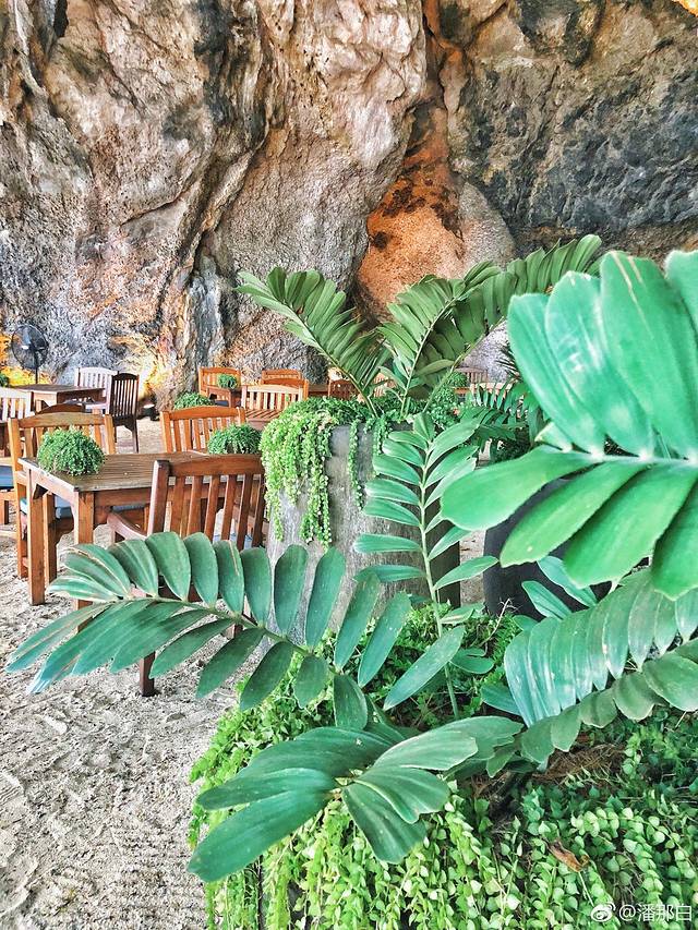 这里还有很多网红们的打卡好地,比如这家岩洞餐厅,正对甲米岛的标志性奇石,同时也是甲米瑞亚维德(Rayavadee)度假酒店的特色之一。