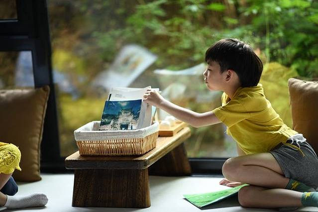 院里院外,也很明显花了不少心思。光线明亮的窗、榻,和孩子们喜欢的绘本。