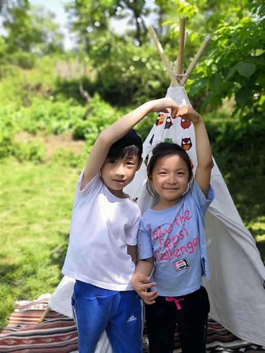 清晨,在草地上能感受久违的露水泥土的芬芳,山林中穿梭感受植物独有的清新气息。如果你想带孩子有调性地感受乡土气息,这真是特别好的感觉.