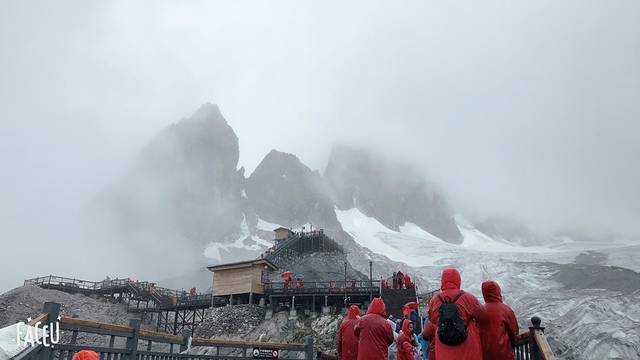 2.早上07:40到达约定地点(一定要吃饱早餐再出发),司机会讲述丽江的风土人情,会先到供销站拿羽绒服和氧气瓶,也有免费的矿泉水拿。羽绒服最好拿防水的,毕竟这边的天气,一下子大雨一下子晴天。后面拿氧气瓶的时候注意了,司机会说高原反应有多严重,还给我们看了坐汽车到坐缆车那里游客晕倒口吐白沫的视频,和店老板各种生命不能开玩笑的说辞,总感觉是吓唬我们,会建议游客再购买一个氧气瓶,60元/1个,个人感觉还是不需要,一个氧气瓶足以。【氧气瓶一定要试多几次,头2-3次在店里试过有气的,去到山脚再试的时候,我们7个氧气瓶,有3个出不了气!!!!】
