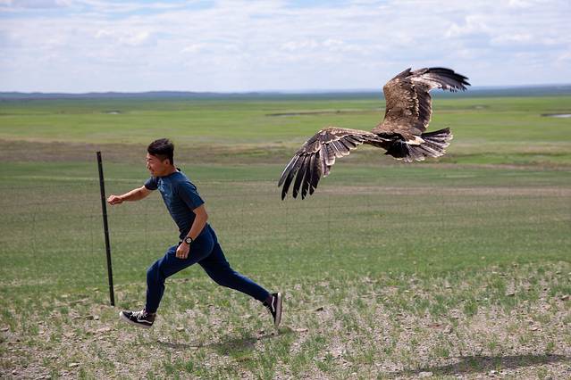 在新巴尔虎左旗,我们遇到了向导双龙。这个内心柔软的蒙古族汉子是个动物保护者,草原上的许多小动物在他的救助下,获得了新生。他清脆的口哨声,引来了翱翔的苍鹰,这已不知是他救助过的第几个小生命。