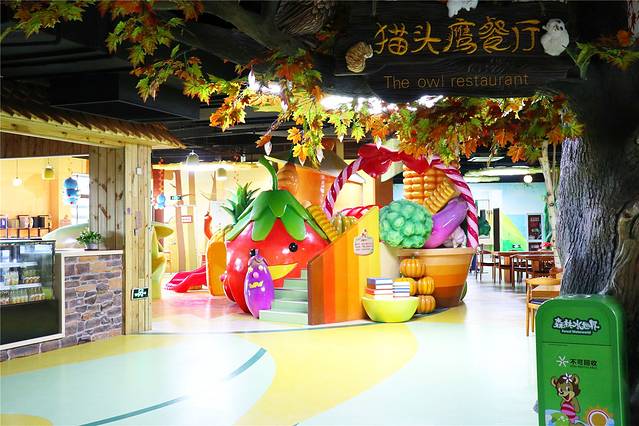 与VR体验馆连接的还有猫头鹰餐厅,起初以为只是一个普通餐厅,走近一看,原来是一家多元素的餐厅。