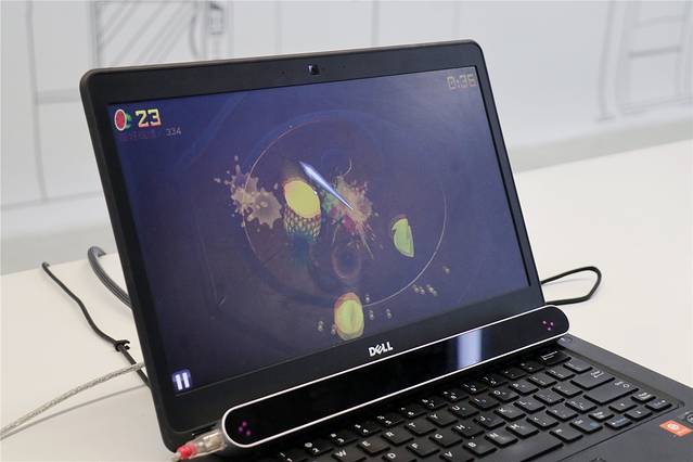 用眼睛代替鼠标?没错,今天我就在这里体验了一把:首先扫描视网膜存入数据以后就能用眼睛控制鼠标啦,选择了简单的切水果游戏,感觉自己成了大侠。