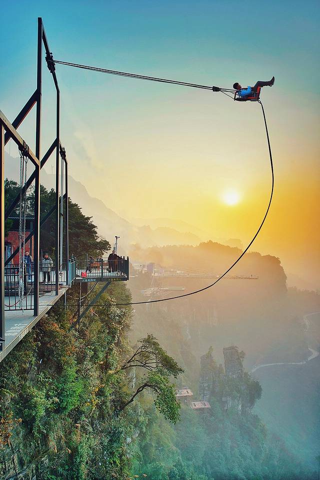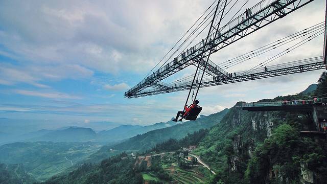不一会儿时间已经看到天空悬廊上行走的都是满满的人群,现在坐悬崖秋千的心里素质的有多好,飞出去的那一刻,感觉人都要随风而走了。