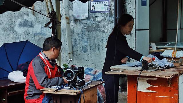 途经路上遇到的街边裁缝店,在 重庆 的街边经常能遇到这样的街边裁缝店,还有理发店,够接地气的味道。