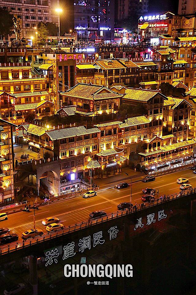 都说洪崖洞的夜晚是最美的,像是现实版的《千与千寻》,整座吊脚楼式的风貌建筑在夜里变成金灿灿的,离远看整片像是被火点燃了一样,也是 重庆 夜晚最受欢迎的景点。在千厮门大桥上靠近洪崖洞一侧的人行道上和对岸是观看洪崖洞的最佳视角,所以游客也是非常的多,大多都是来拍抖音的,不建议晚饭时间来,人多到走不开,建议10点钟以后再去看,人就比较少了,因为11点半洪崖洞关灯。