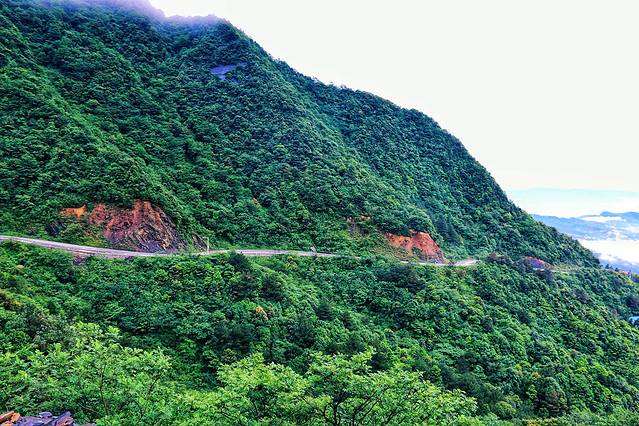 从水云台我们住的小区到西门要下一个弯弯曲曲的山坡,大约10分钟的车程,道路崎岖,但是却非常漂亮,如果在这里航拍的视角看这条公路,一定会像是镶嵌在绿色宝石上的一条珍珠项链。远处的山层峦叠嶂,薄雾飘荡在田间和峡谷里,隐约有种 意大利 托斯卡纳 的田园风光,忍不住途中下车拍下了这样的美照,让我对今天奥陶纪景区的景象有了新的期待。