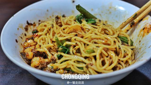 都说 重庆 人的一天是从小面开始的,早起的一碗小面下肚,就可以开始正常的工作了,所以少了小面,貌似 重庆 的味道都失去了一半了,毕竟它应该算是除了火锅外,又一 重庆 标配了,缺一不可。 在吃面这件事情上,我始终觉得我们 陕西 人应该是最牛的,毕竟以面食为主,可以做出很多花样来,但是 重庆 的小面也是我吃过最好吃的南方面食了,小面的佐料不是入到面里的,而是与面搅拌在一起一起食入的,这样的结合也是蛮特别,非常好吃。不得不吃的就是非常有名的花市豌杂面。