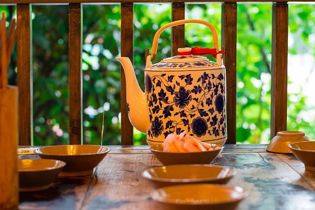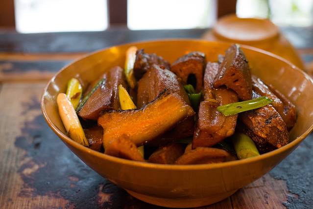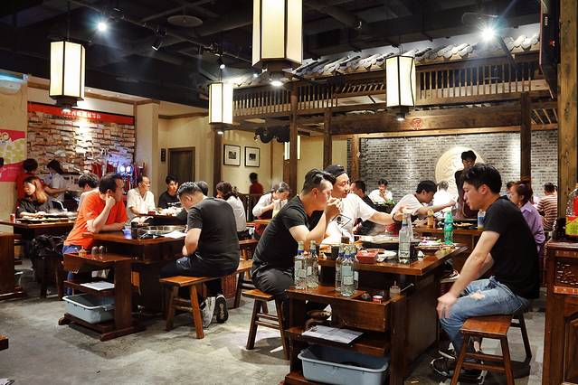 来这里吃饭,服务员会称呼你为客官,一下以为自己回到了古装电视剧中的行侠走江湖的感觉,江湖气息十足,加上古色古香的装修风格,有个性的菜谱,旗子,灯笼,茶壶,这样就不难理解为什么叫江湖菜了。