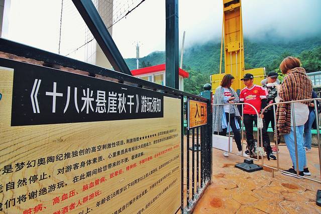 趁景区开门的时间早早的进入景区,此刻18米的悬崖秋千还没有游客到来,过一会儿可是想排队,都估计的等很久了,所以想玩儿这个项目的朋友,一定要提早趁开门来体验。否则到了中午就真的有可能是排队1小时,爽半分钟哦。