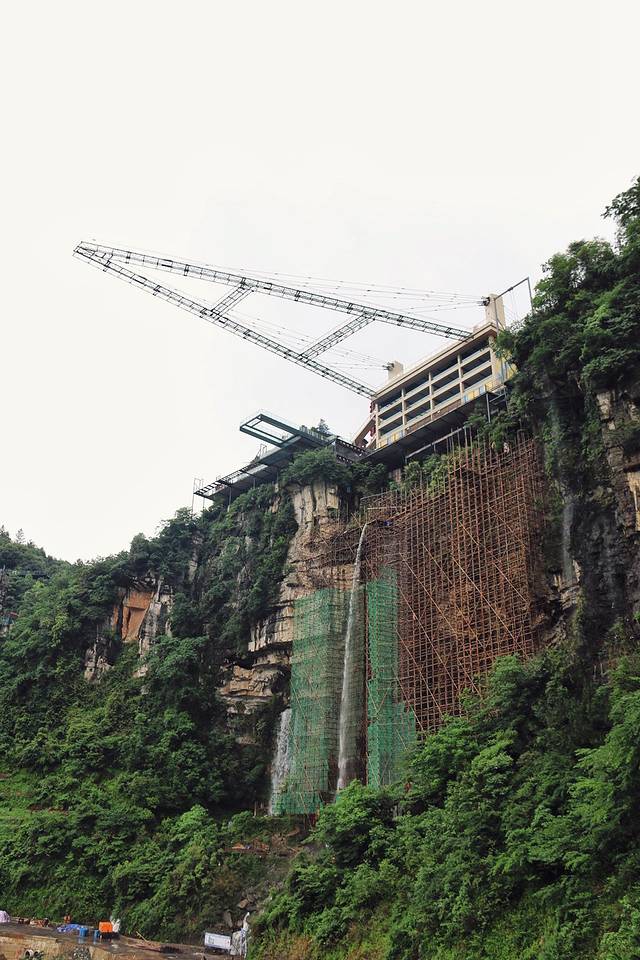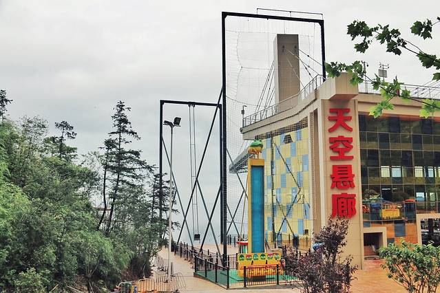 在景区西门外部下坡的位置有一处小道,从这个视角就能真正感受到天空悬廊与悬崖地面的高度了,想想要是在此时晴天下,再站上去怕是走路也要小心翼翼的吧。