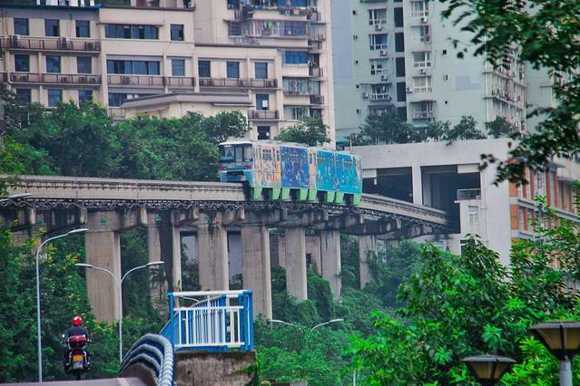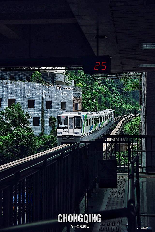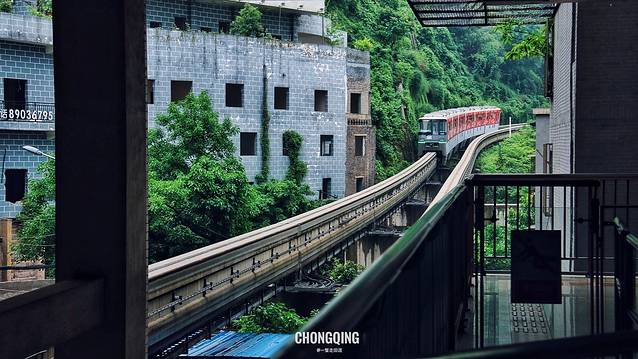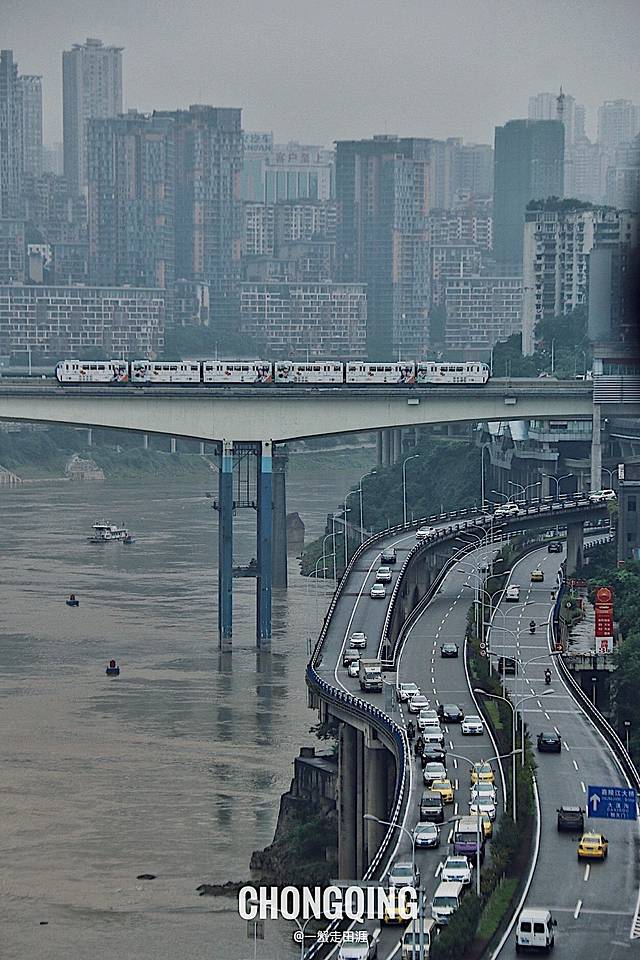 重庆 的轻轨上天入地的,蜿蜒在城市中央、桥上、江 边和 各种建筑中,每一秒的飞驰而过都是城市中最美的一道风景线。