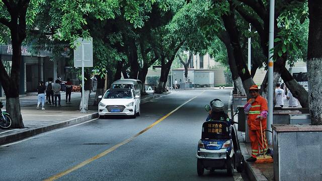 下雨的缘故,所以步道沿途绿树成荫,空气也十分清新,火炉城市此刻也变的十分舒服和清凉,两边留下的都是几十年的老房子,因为拆迁,很少看到有居民了,但是从那些老物件看,很有 重庆 老城的市井味。