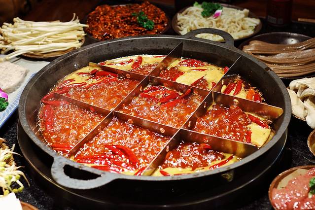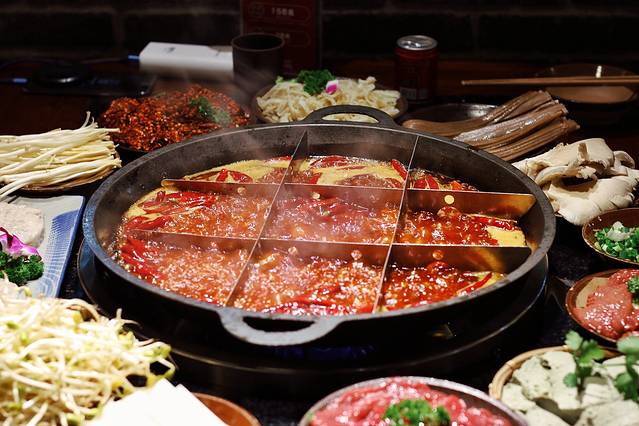 在吃这件事情上,旅行博主们一向是很认真的,不作不行,为了拍照好看,我们也是拼了,点了一个微微辣的九宫格锅底,看这卖相是不是确实不错,无论都的多饿,忍者也得各种拍美图,刚开始吃就已经辣哭了,辣到菊花紧张又疼,开始担心明天我还能正常走么哈哈。