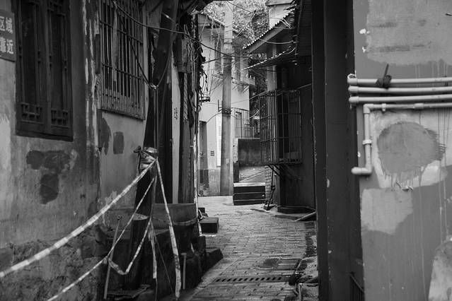 老树依然茂密繁盛,树荫依旧遮挡了许多,在四周被拆得七七八八的房子中显得暗淡起来。沿楼梯而上,道路依旧狭窄,流水和青苔倒是为这里增添了一丝生气。