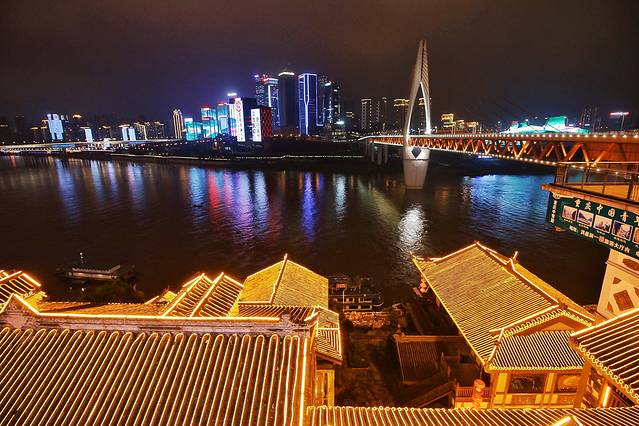 “名城危踞层岩上,鹰瞵鹗视雄三巴。” 清代名臣张之洞曾这样赞颂这座城。白日里,那道路,层叠交错的线条分外明显,车来人往永不停歇;夜晚里,那江面,金光倒影,波粼微动。