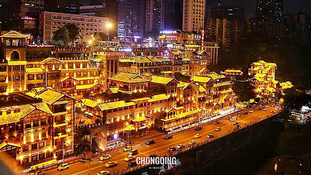 洪崖洞原名洪崖门,是古 重庆 城门之一 ,位于 重庆 市核心商圈解放碑沧白路、长江、嘉陵江两江交汇的滨江地带,拥有2300年历史,坐拥城市旅游景观、商务休闲景观和城市人文景观于一体。以具巴渝传统建筑特色的“吊脚楼”风貌为主体,依山就势,沿江而建,解放碑直达江滨。洪崖洞一共有11楼,底楼连接滨江路,而11楼则是连接解放碑的 望江 平台。远远看上去,洪崖洞就是一座建在山上的楼。而走进了看,洪崖洞又像是平地起高楼。