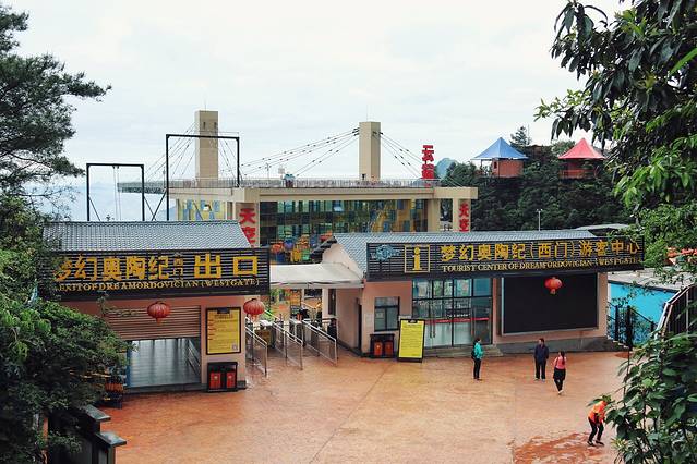 前一天在雨中耍了一整天,整个穿着雨衣打着伞都被这大雨浇灌的浑身湿透,于是祈祷今天老天一定要许我们一个不下雨的天气,晴天也没有指望了,好在上天眷顾,果真清晨起来发现没再下雨了。所以再准备进奥陶纪景区看看大雾散后的景区是什么样的景象。