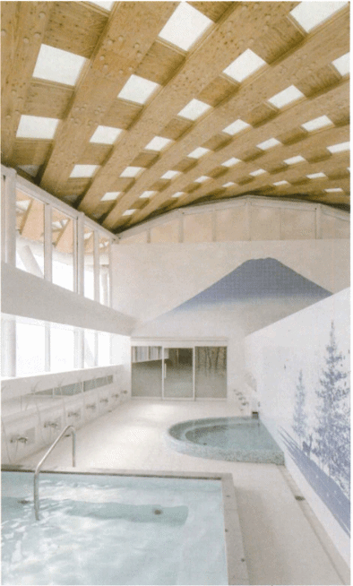 女川的YUPOPO位置十分有趣,设在站内。整个女川站的设计也十分有趣,YUPOPO层高非常高,十分宽敞。墙壁上绘有富士山的图案,如同电视剧中看到的日式浴场一般。