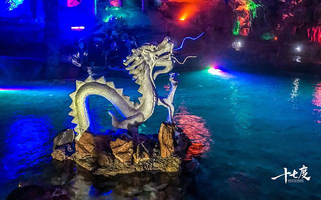 从灵泉洞下船,洞内依然是怪 石林 立的钟乳石,穿过或窄或宽的过道,还会看到岸边立着一条小白龙的雕像,威风堂堂栩栩如生,也是当年拍《西游记》时留下来的。