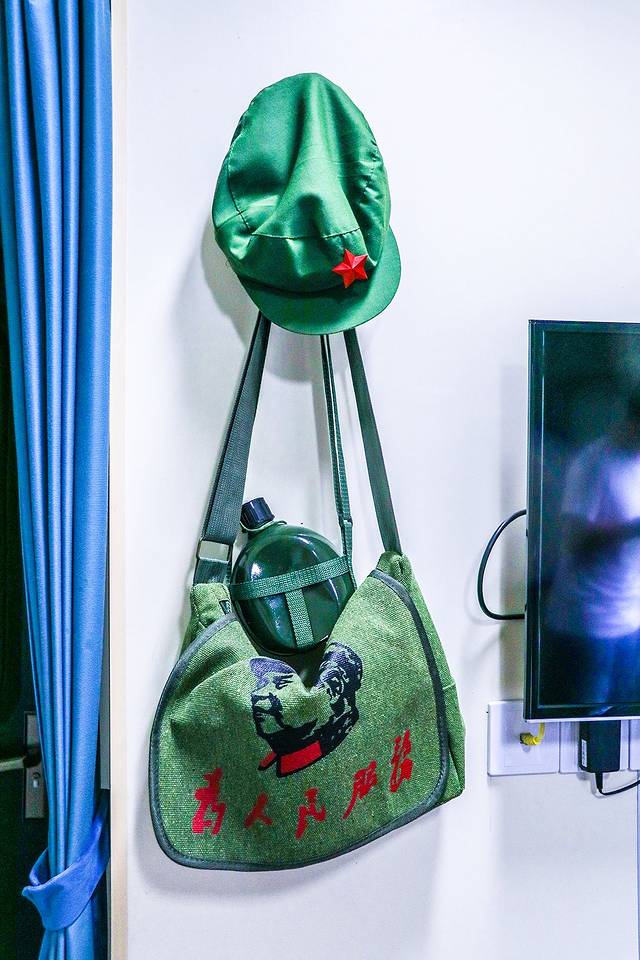 从轨道里缓缓走进去,极具年代感的绿皮火车里,被分割成一间又一间的卧室居所,一张简单的双人床摆放其中,随处可见简单舒适又富有年代感的居房用品,造型简单而独特的椅子搭配长木桌,简约随性,营造了一个极其轻松自在的气氛。绿色五角星帽,瓷缸茶杯,还有各种典型的细节,渗透着革命时期的朴素主义与浪漫情怀,更是让人一阵恍惚,仿佛一不留神,就来到了 建德 的逆时光穿行,