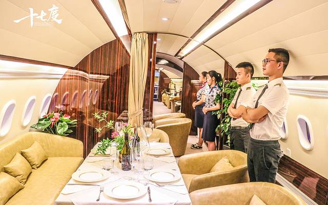 在优雅舒适的餐厅里,各种精致的西餐料理,更棒的是空姐空少齐上阵,一番摆盘上桌,笑脸盈盈的空姐一边欢迎体验,一边介绍主题餐厅里的特色美食,贴心舒适的服务,更是让人感受到了航空餐厅的宾至如归;