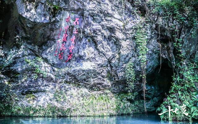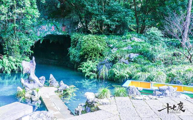 乘一叶轻舟,泛舟而行,一路摇摇晃晃不一会就到了灵泉洞,流水潺潺,泉水淙淙,摇船悠悠,时光轻缓,却也更有一番清幽雅致;指尖轻轻滑过江面,偶尔溅起一丝水花,闪出星星点点,偶尔头顶上方的钟乳石悄然滴水,头顶手臂一阵,17度的体感温度瞬间涌上心头,不由得感到一阵清冽舒爽的凉意~