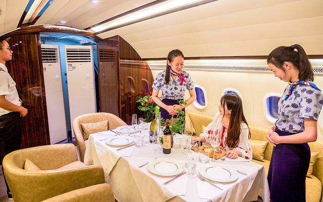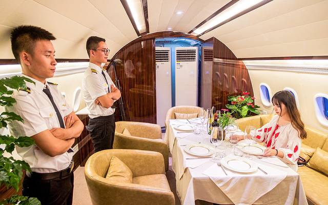 享受晚餐的同时,也千万不要错过头舱的模拟驾驶体验;客串一回“飞行员”,观摩飞机驾驶舱的同时还可以拍照留念。听说未来,餐厅与一家高科技公司合作研发的VR产品也将为游客带来更多丰富的航空体验,游客可以边用餐边体验真实的飞机起降感受。