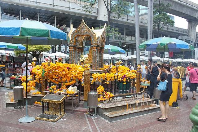 这里有传说中有求必应四面佛,所以每天都有很多人过来拜。