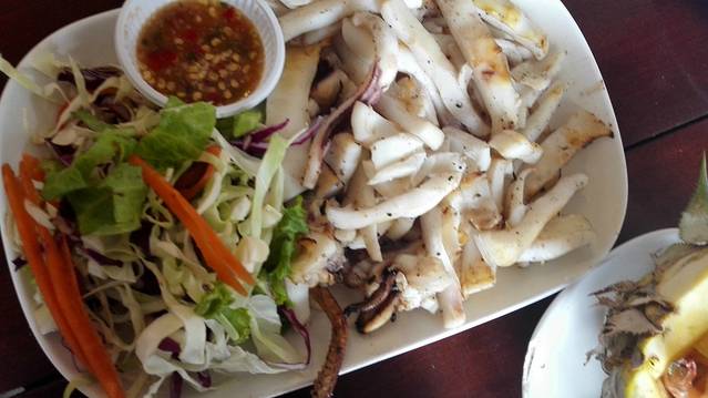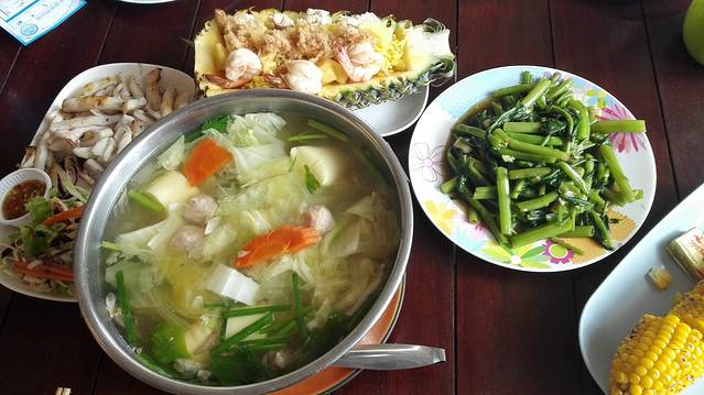 通过我妈的手语(捂眼笑)后,成功在一家大排档坐下了,点了大概5道特色菜,总共花了130泰铢,感觉这消费真心不贵啊