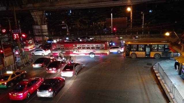 夜晚的曼谷车还是如此的多,怪不得这里天天塞车