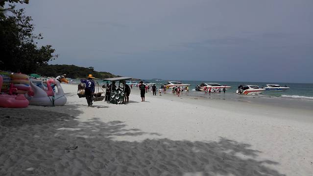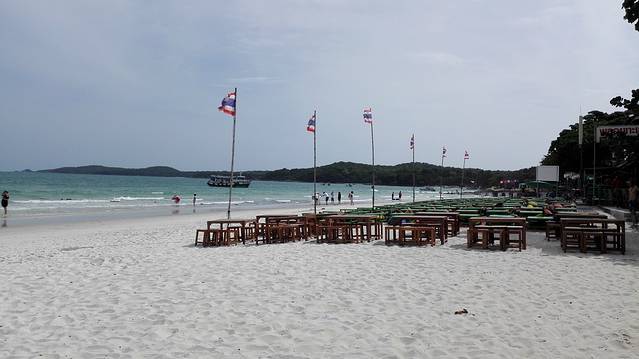 去芭堤雅,一定要去沙美岛,因为沙美岛的确是名副其实的“沙美岛”。那黄里透白,面粉一样细嫩的海沙,铺成又长又宽的沙毯,为太平洋镶上了金色的花边。