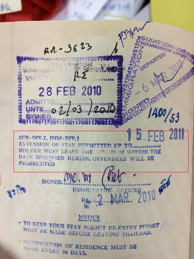 5、不接收曾在泰国逾期逗留或延期的护照(延期指在泰国当地移民局曾申请延长签证逗留期限,示例如下)
