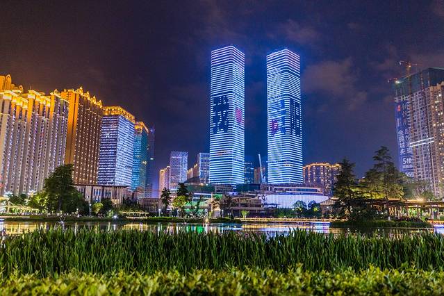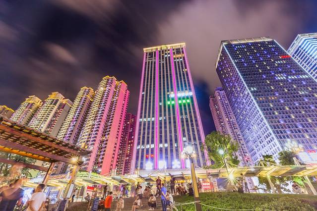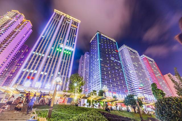 这里叫做花果园商业区,如果没有说错的话,应该是贵阳最繁华的地段之一。这里高楼大厦,笙歌夜舞,每一栋楼房都霓虹张扬,看上去效果非常的好。
