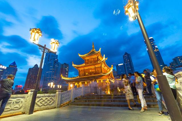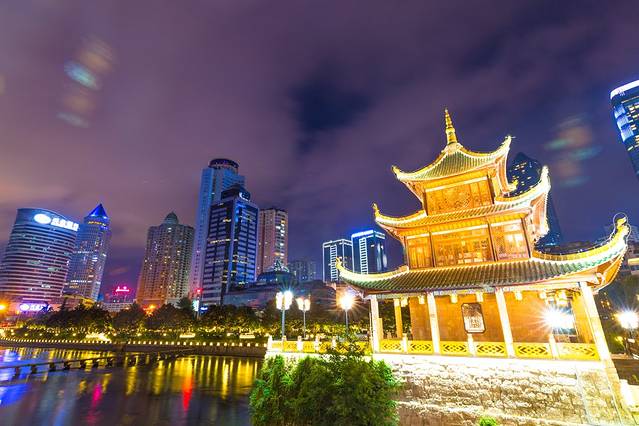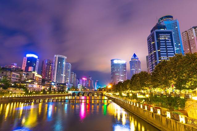 傍晚,到达酒店后安顿下来,跟朋友一起来到贵阳最繁华的地段,据说这里的夜景很美。