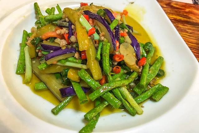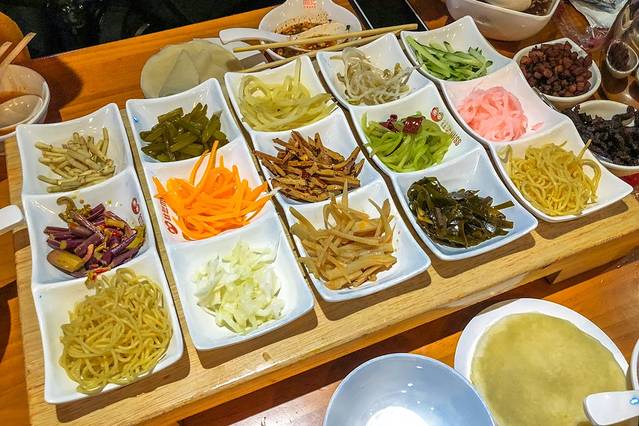 原先不知道丝娃娃是什么东西,也不知道怎么吃,我们是看着隔壁桌的人点菜和吃法,请教他们才知道怎么吃。这里的食物全部是酸辣味道,有些不错,有些可能不是很习惯。