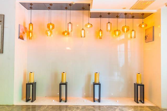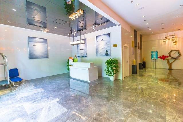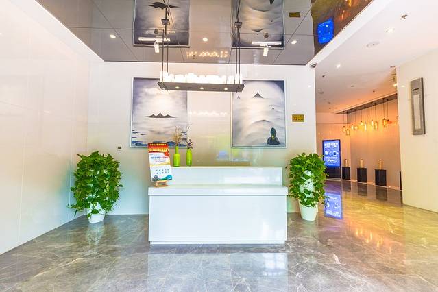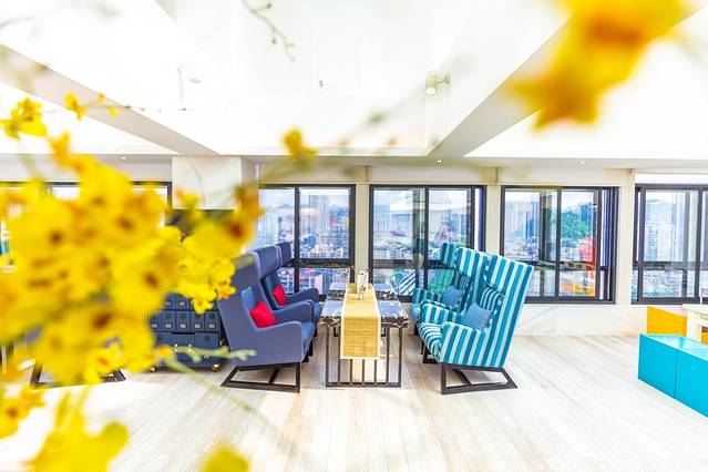 我喜欢酒店的装修和色调,简约的灯光摆设,白色的墙面上粘贴着一些文艺多彩的贵州山水照片,大厅的沙发和桌椅都略带着素色文化,22楼的空中大堂顶部是透明的玻璃,温柔的阳光可以直射大厅,如果觉得炙热,也可以拉上顶上的布。