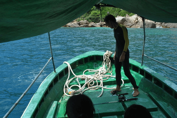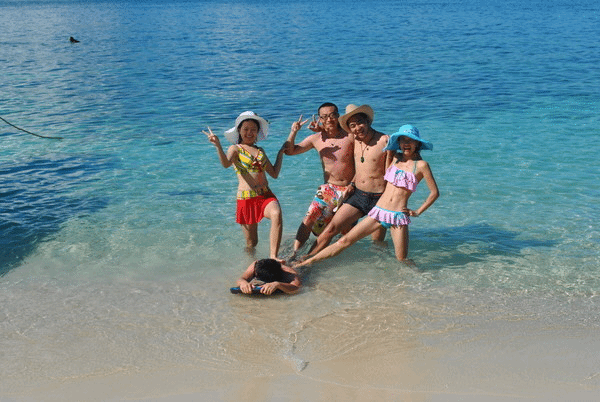 海底的石头上有各种各样的珊瑚,有的像黏黏一稠稠的大脑,有的像一道一道的指纹,还有的像枯萎的树枝。珊瑚虫到处都是,安静地在海底躺着。三亚的海面湖水碧蓝碧蓝的,非常透明,透过海面都可以看见海底,捧一把水,它立刻就漏掉了。鱼成群结队的游来游去,五颜六色,好看极了。那些鱼有的头上长着一根绿色的草,敌人一来,它就迅速躲进沙子里;有的全身长满了刺,鼓起气来像刺球一样;还有的身上有各种颜色,像一个调色盘。