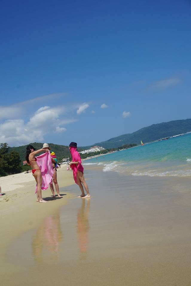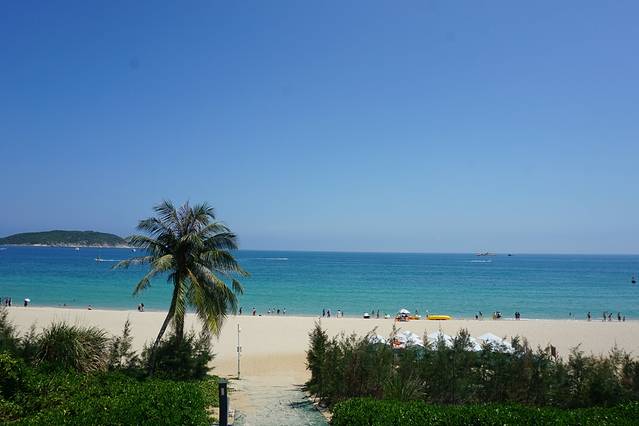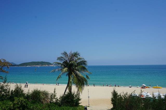 2个小时不到开到亚龙湾,沙滩上人不多,阳光明媚,天蓝到水里,细沙包裹着脚丫,十分舒适、温暖,同时感受到北纬18°的热力!