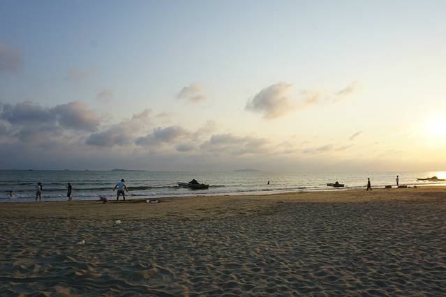 黄昏再去绿城的威斯汀酒店海边吹吹风 ,看到夕阳如血,有人在海边策马奔腾,可惜相机没有带,手机拍不出那个效果。