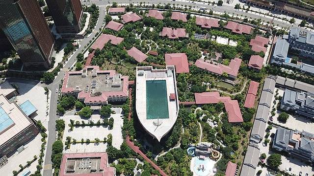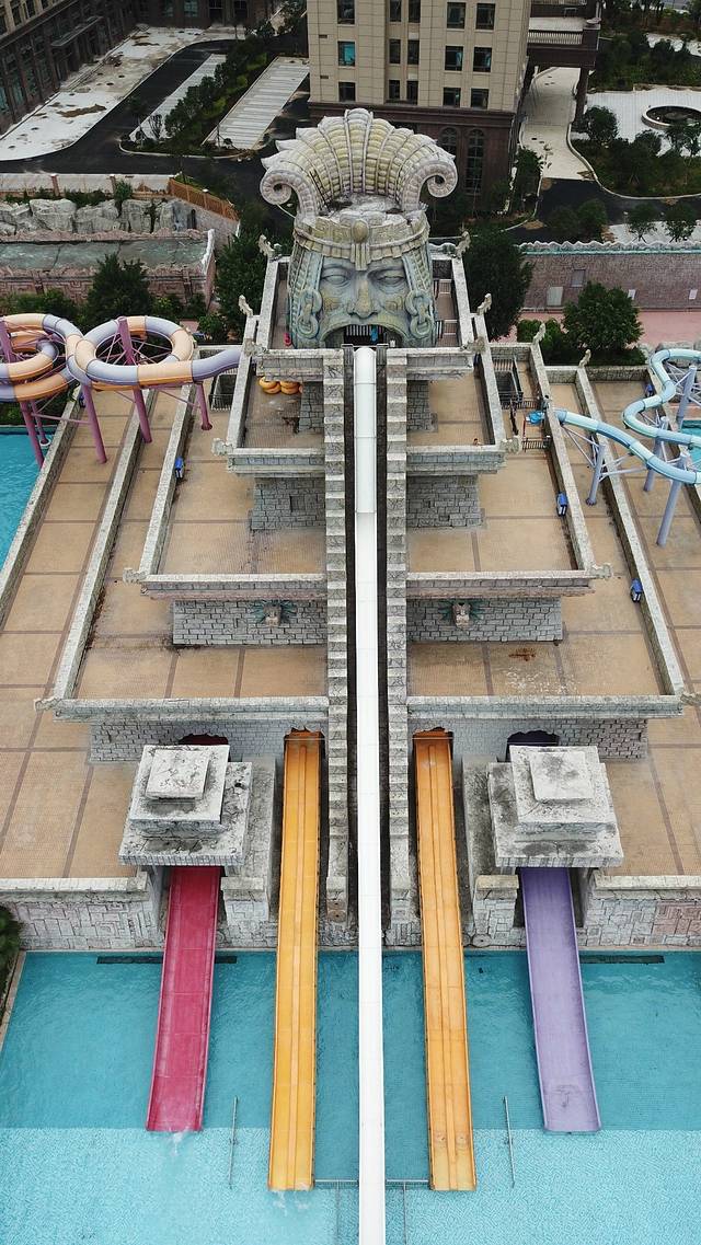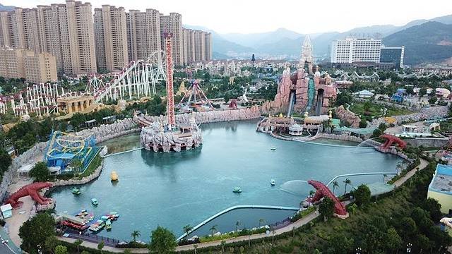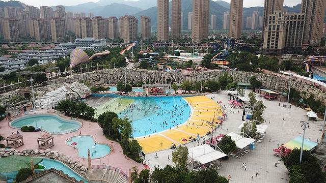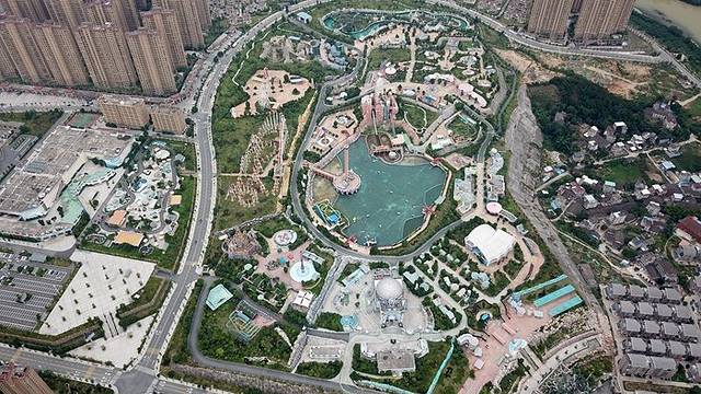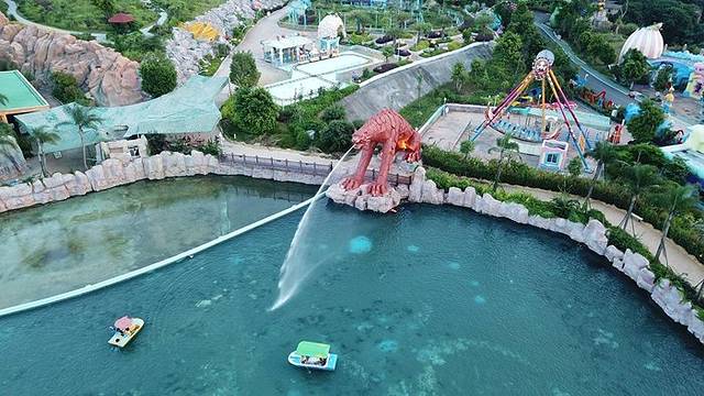 水世界里面有21个大型游乐设施,跟着我们一起进去玩吧!因为正直周末,游客比较多,所以我们有些项目排队20-30分钟,我就挑选一些我们玩过的设施介绍吧!我们先从天上看下水世界的全景吧。