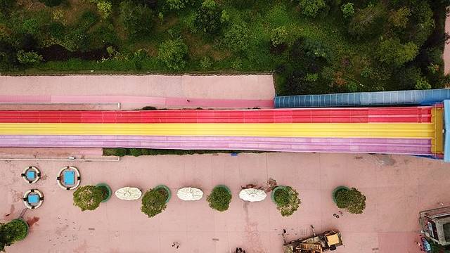 乘坐的双人皮艇飞过了12米高空滑道,最终被彩色漩涡吞没,整个过程享受极速冲浪。