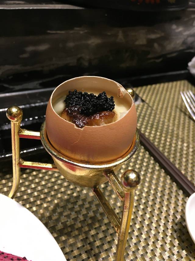 这是“鱼子酱鹅肝蒸蛋”滑溜溜的蛋液,加上进口的鱼子和鹅肝,口感绵绵,咸鲜回甘,赋予鸡蛋不一样的美食生命力