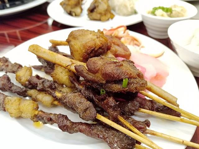 点了烤羊肉串,色泽鲜亮,外酥里嫩,膻味处理的恰到好处,也不担心是老鼠肉做的,配上冰镇饮料,就是这种活法!